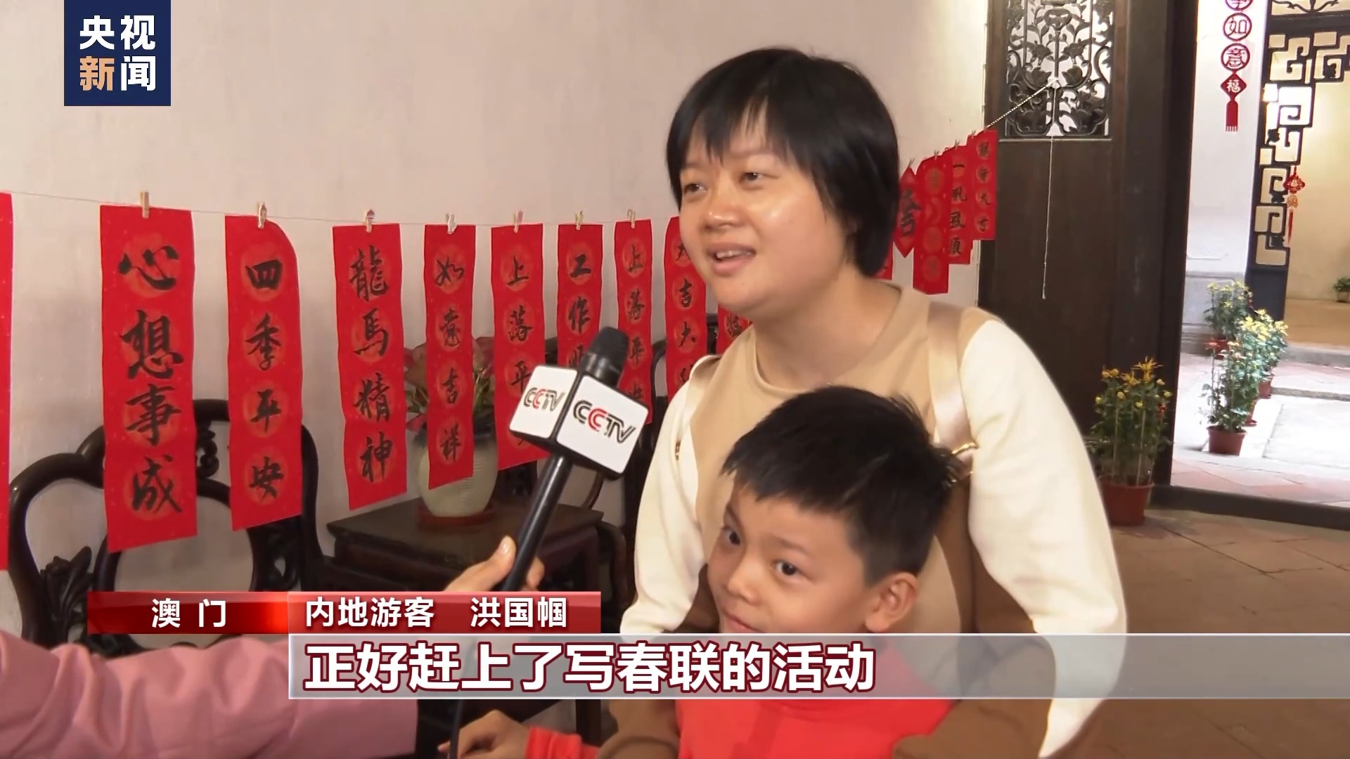 内地游客洪国帼:这次来到澳门,正好赶上了写春联的活动,孩子也亲自体验了一把自己写春联,感觉非常棒。