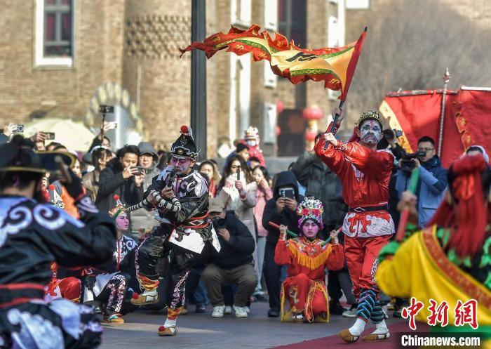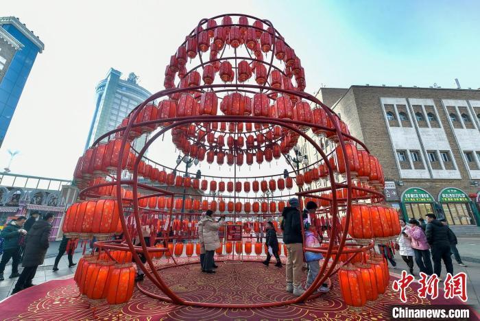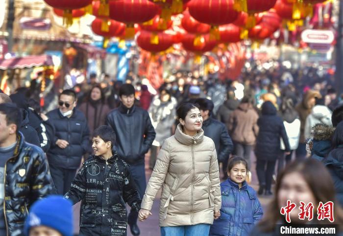 乌鲁木齐大巴扎景区人头攒动,众多市民和游客来此观看民俗非遗文化展演,欢欢喜喜过大年。中新网记者 刘新 摄