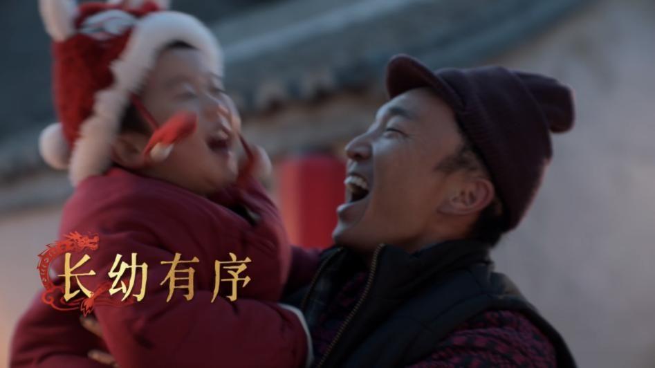 中国人的“称谓”可算是复杂,相比英语里“uncle”能指代伯伯、叔叔、姑父、姨父、舅舅,而不论是堂兄弟还是表姐妹,都是一个“cousin”,我们的文化里,无论是小小的三口之家还是沿袭几代的大家族,不同的人有着不同的称谓。不管是许久未见,抑或是远在天边,只需一声亲切的称呼,就能把家人之间的距离拉近。每一个称谓都体现了每个人在家中强烈的归属感,同时所有的想念和祝福都包含在一声声称呼里,正所谓声声称谓,深深亲情;声声称谓,家家凝聚;声声称谓,代代传承。于是,在甲辰龙年春晚首次亮相的公益广告《中华一家人》的创意便由此而生。