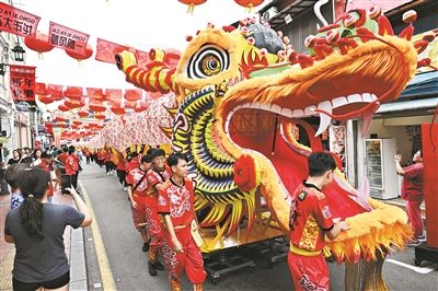 从各国使节在联合国体验包饺子、写福字,到瑞士日内瓦万国宫高悬起大红灯笼,从新加坡“春到河畔”的巨龙灯饰熠熠生辉,到马来西亚马六甲的百余少年共舞长龙……天下同春,龙年的祝福正从四面八方传来。