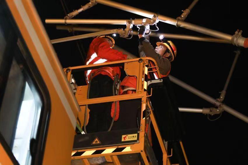为了保障福厦高铁春运期间的安全运营,助力乘客平安、顺利回家过年,在列车停运后的0点至4点,“蜘蛛侠”们就得对大桥上的接触网设备进行全面的“体检”。