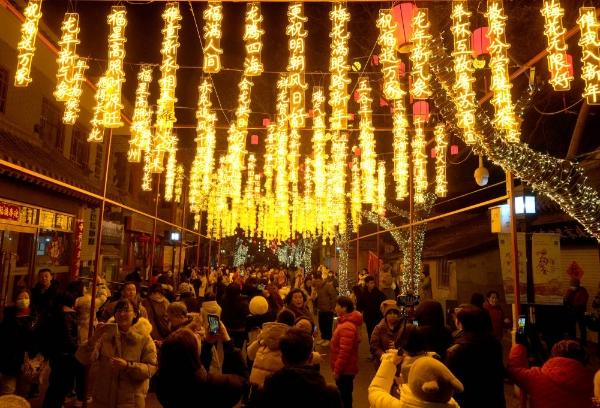 山西太原市钟楼街的灯光,唤起了市民苏爱珍对春节的美好回忆。今年,街上的老字号、品牌首店、市集等,以“龙”为主题进行了亮化装扮。透过流光溢彩的灯光,不远处传统门楼的歇山顶若隐若现,展现古代将军们英武之气的舞蹈《相见欢》巡回上演……灯火和声乐共同营造出欢乐祥和的过年氛围。