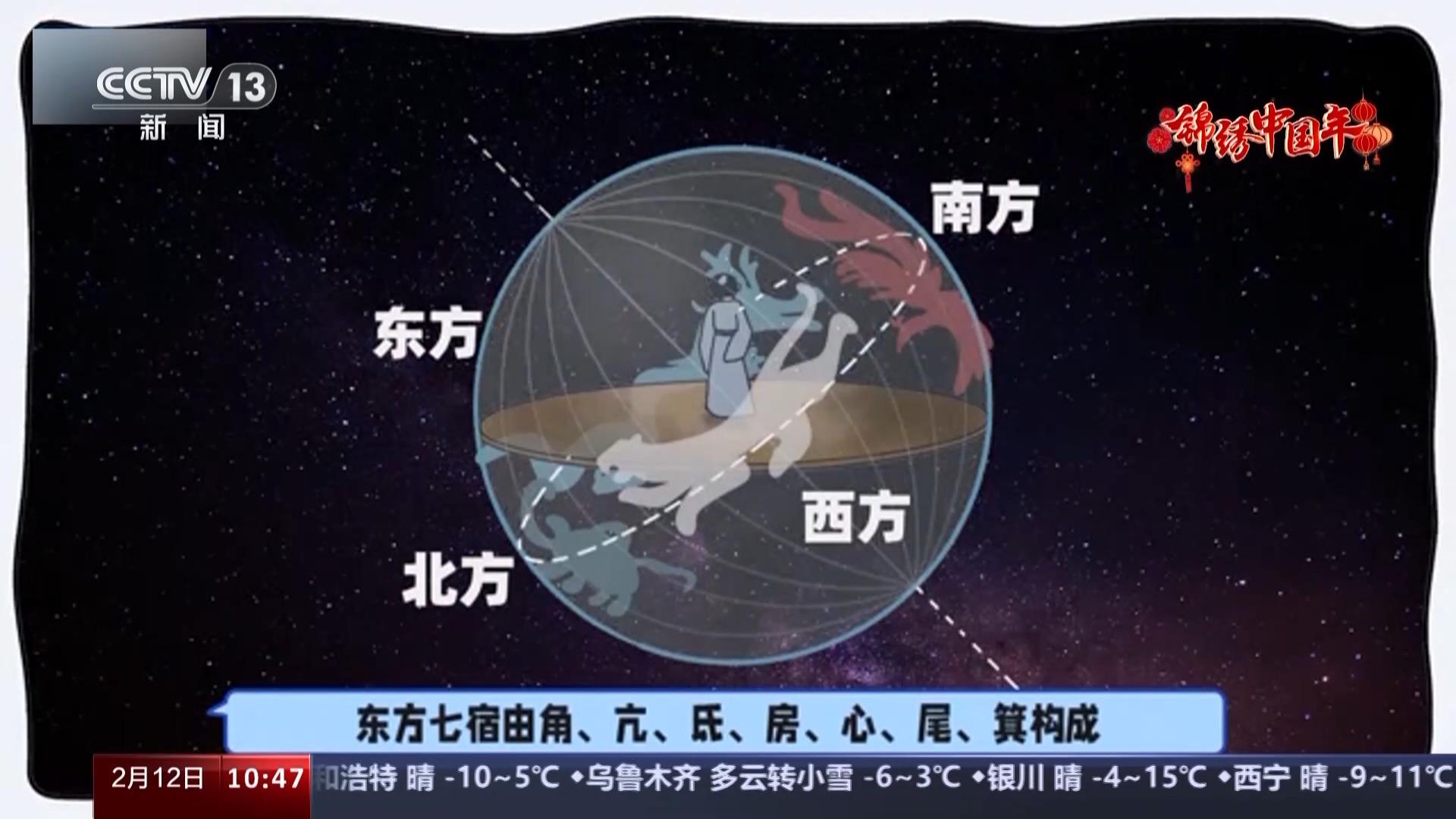 其中,东方七宿由角、亢、氐、房、心、尾、箕构成。看上去,东方七宿组合而成了一条青龙:角宿是龙的犄角,亢宿是龙的颈,氐宿、房宿是龙的身躯和爪子,心宿是龙的心脏,尾宿则是龙的尾巴。