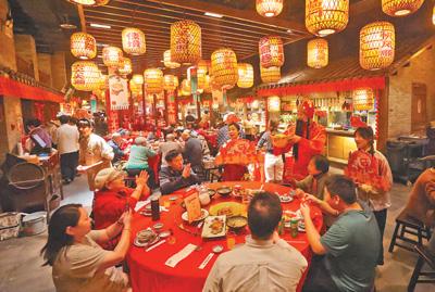 “过年一家人一起吃顿热气腾腾的火锅,方便又热闹。”山东青岛市李沧区居民王淑芳在海底捞“海鲜工坊”特意点了一条全头全尾的鱼,寓意年年有余。该店经理赵帅说,“春节假期是餐饮旺季,生意非常好,位置早早订出去了。”
