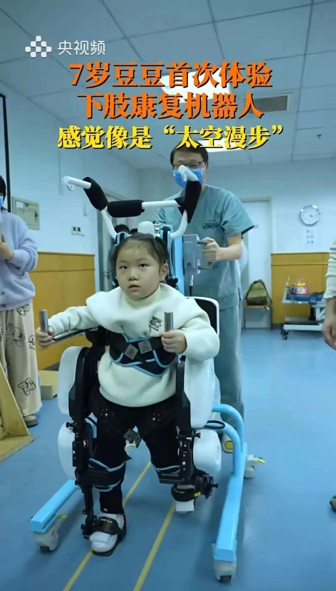 在北京期间,总台记者陪着豆豆妈带着豆豆去看了北京儿童医院的专家。医生们为豆豆会诊,还让她首次体验了下肢康复机器人。