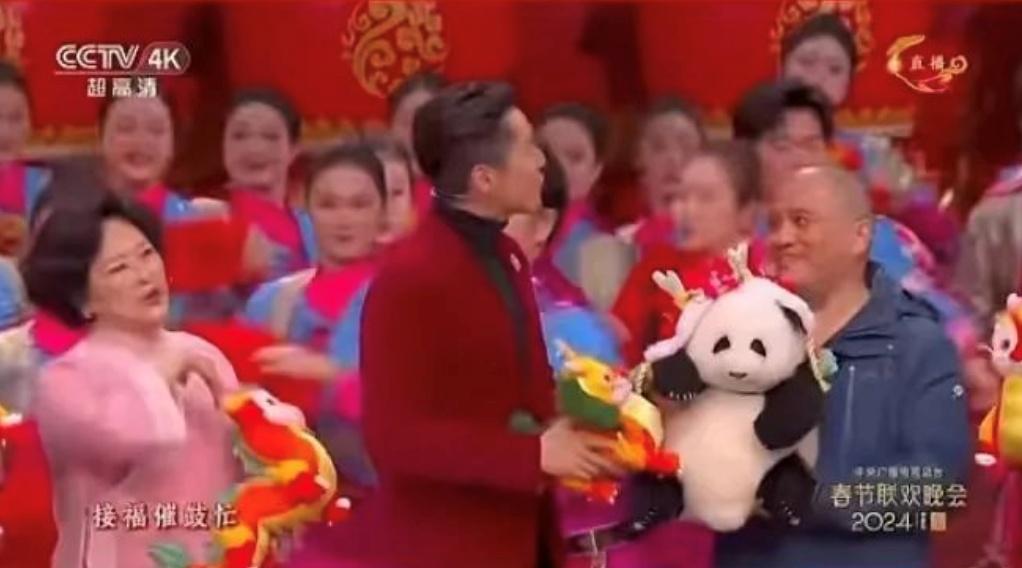 熊猫见熊猫,镜头要给到。在歌曲《健康到到令》中,有一只可爱的动画版熊猫,这时镜头特意给到了“谭爷爷”和“花花”。