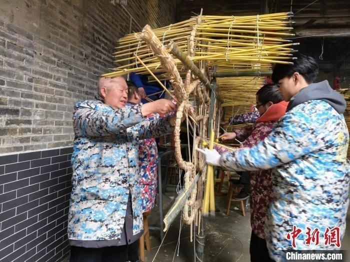 2月初,春节前夕,汝城县当地民众一起制作香火龙。汝城县供图