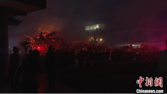 2月13日,湖南汝城香火龙“出动”,在夜幕下熠熠生辉。何子豪 摄