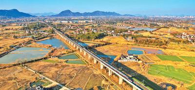 春节假期,浙江绍兴,一列复兴号动车组列车正在行驶。周围摄(影像中国)