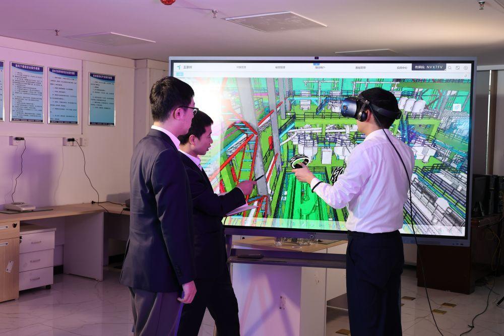 中煤天津设计工程有限责任公司技术人员通过虚拟现实技术实现远程操作。新华社发