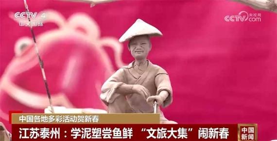 春节期间,江苏泰州兴化市举办了新春“文旅大集”活动。在现场,除传统花船、舞龙等民俗表演外,当地泥塑非遗传承人还带来了蟠龙、渔船、渔具等雕塑作品,游客在老师们的指导下也学起了雕刻泥塑。此外,大集上还能品尝到新鲜水产品加工成的鱼圆、鱼头汤,让大家“年年有余”,图个好彩头。