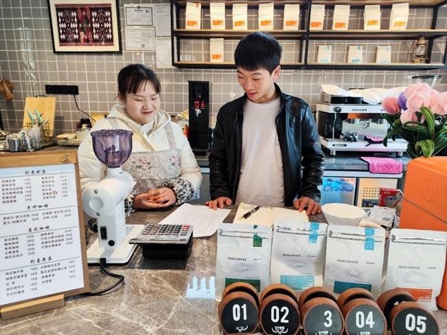 柏令和“云中苗寨”咖啡厅的咖啡师对接准备工作。张琳摄