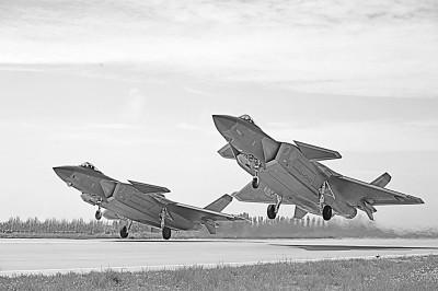 空军“王海大队”飞行员驾驶歼-20战机编队起飞。王鸿飞摄/光明图片