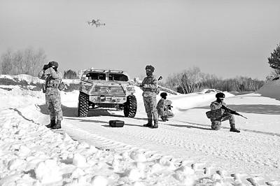 陆军某旅三角山边防连执勤组外出巡逻时使用无人机侦察。新华社发