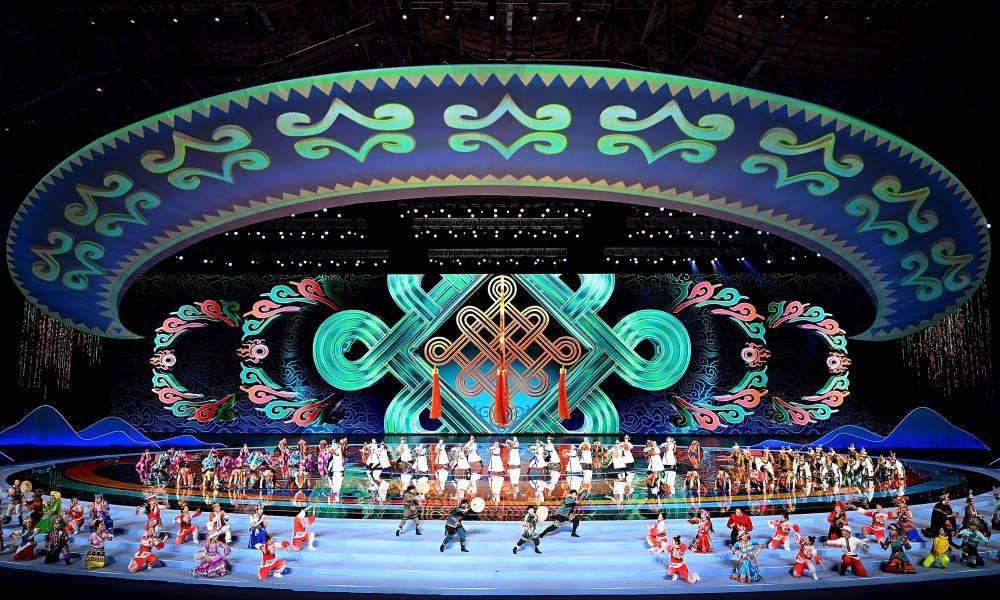 天津年画、苏州园林、福建土楼、西藏布达拉宫……在开幕式的代表团入场环节,各省区市的人文风情和地标元素通过剪纸、国潮风彩绘等艺术风格展现,搭配着《鄂伦春小唱》《美丽的草原我的家》《骏马奔驰保边疆》等耳熟能详的内蒙古音乐,让观众领略到中华民族辉煌璀璨的文化。