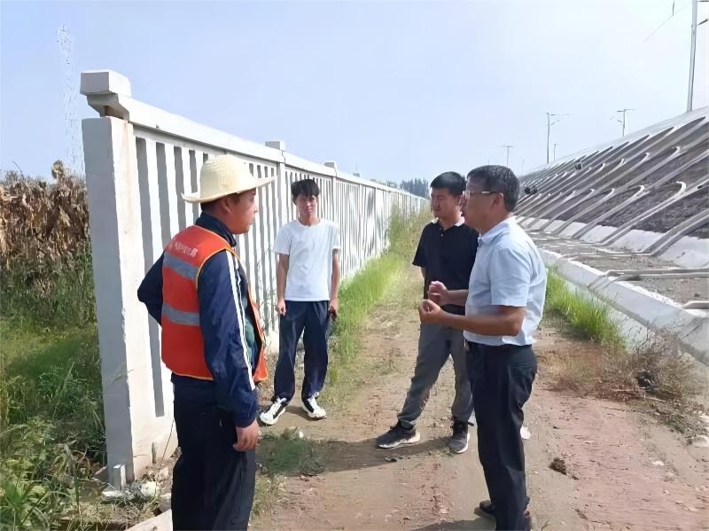 崔兆峰(图右)检查津兴城际铁路路基段防护栅栏等设备设施(央广网发 受访者供图)