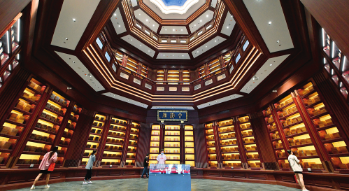 观众在位于北京的中国国家版本馆中央总馆文瀚厅内参观(2022年7月30日摄) 李鑫 摄 / 本刊