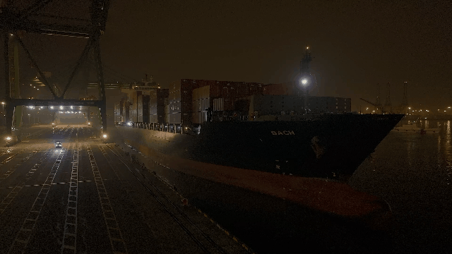 满载车厘子的“BACH”号大型集装箱班轮抵达天津港(央广网发 天津港供图)