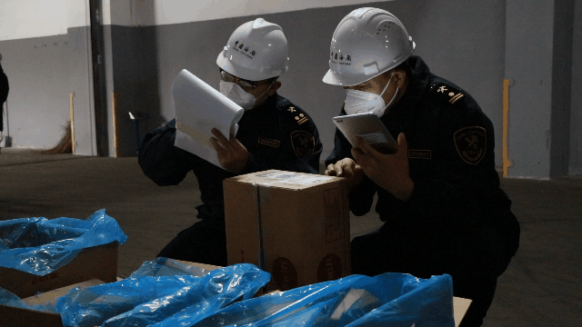 天津海关所属北塘海关工作人员在查验货物(央广网记者 周思杨 摄)