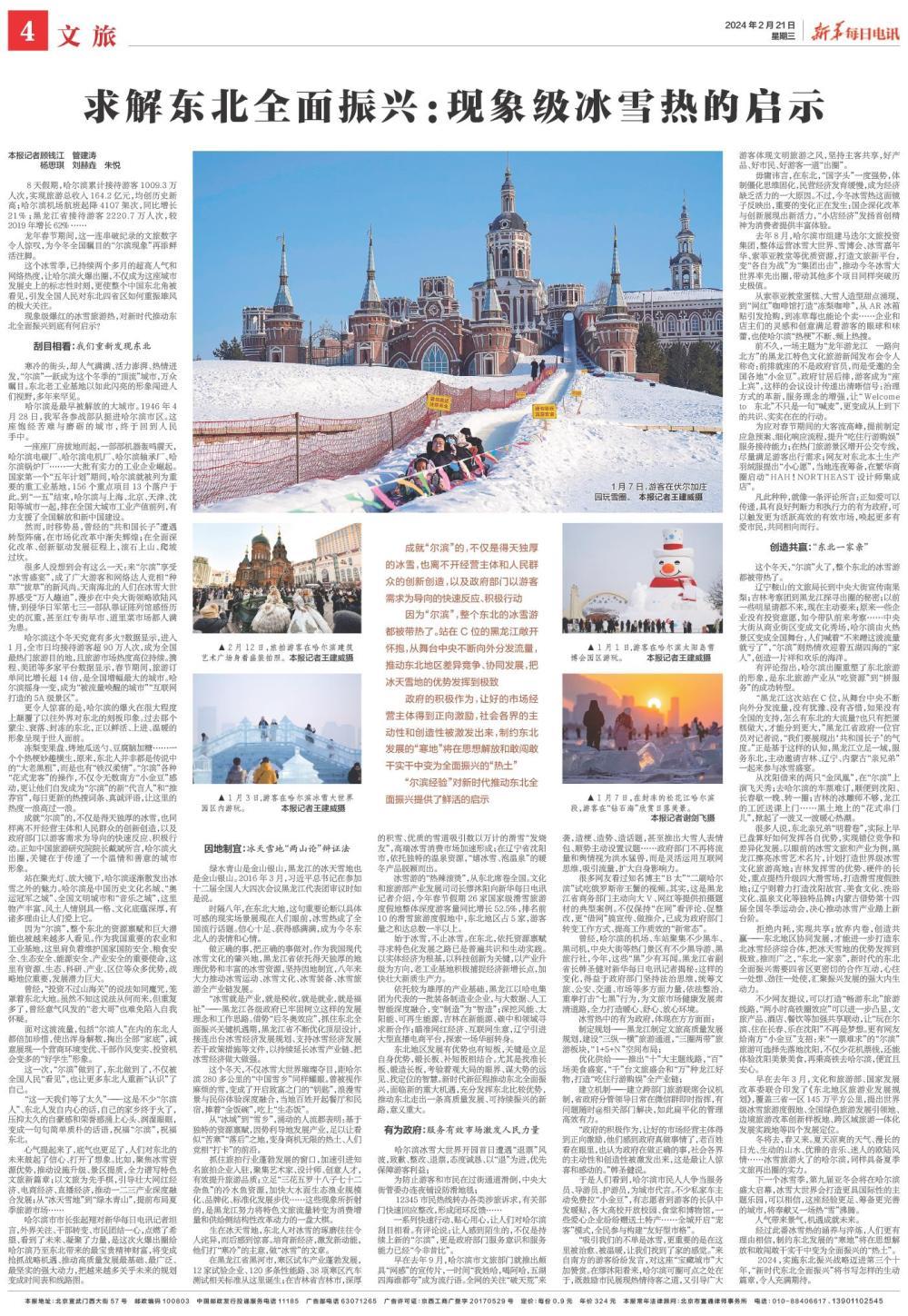 成就“尔滨”的,不仅是得天独厚的冰雪,也离不开经营主体和人民群众的创新创造,以及政府部门以游客需求为导向的快速反应、积极行动