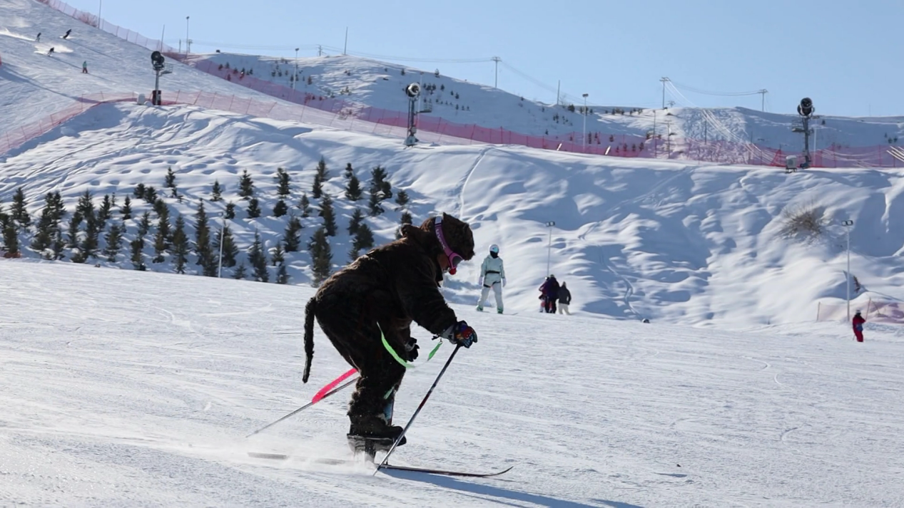 这边,“十四冬”赛事正酣;那边,4000公里外的新疆阿勒泰将军山滑雪场上竞技同样火热。雪道上,身着各色滑雪服的雪友飞驰而下。