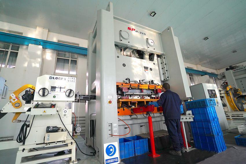 工人操作机器生产冰刀配件。齐齐哈尔黑龙国际冰雪装备有限公司供图