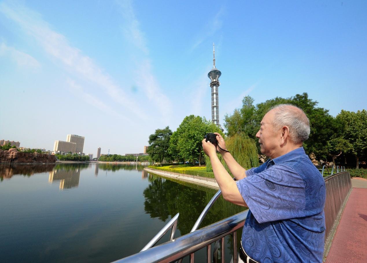 家住石家庄市石府小区的资深摄影爱好者王汝春在拍摄照片。受访者本人供图