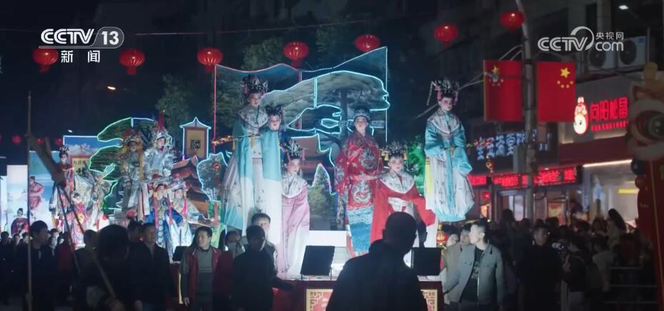 晚上8时左右,在莆田市仙游县枫亭镇的主街上,游灯活动正式拉开帷幕。一座座花灯、彩车在锣鼓声中以方队的形式缓缓穿越当地主街的广场依次向观众展示,有寓意年年有余、鱼跃龙门的灯牌方队,有造型火树银花、装饰有十二生肖的松树伞灯方队,也有使用萝卜雕刻成龙凤形象的花盆菜头灯,还有集花灯和莆仙戏表演等为一体的百戏妆阁灯。