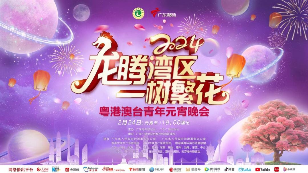 广东海外联谊会、广东广播电视台主办,广东广播电视台数字频道管理部承办,广东省人民政府台湾事务办公室、广东省人民政府港澳事务办公室、中央政府驻港联络办广东联络部、中央政府驻澳门联络办广东联络部、粤港澳青年演艺创意联盟以及省内各地海外联谊会等协办,共同打造的“龙腾湾区·一树繁花——2024粤港澳台青年元宵晚会”,将于2月24日元宵之夜19:00在新华网、广东移动频道及其抖音、视频号、N视频、南方都市报、广州日报、羊城派、触电新闻App、粤听App、荔枝网等20多个平台重磅播出。