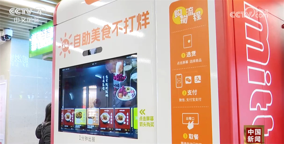 与我们熟知的服务区内售卖饮料零食的自动售货机不同,这里的售卖机提供24小时热食服务,工作人员每隔两到四个小时就会补货,以满足顾客需求。