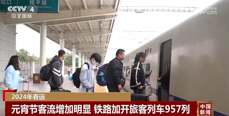 央视网消息:2月24日是元宵节,随着天气逐渐好转,旅游、学生、务工等客流增加,出行需求旺盛。铁路部门加大运力投放,增开旅客列车,公路、民航客流量继续高位运行。