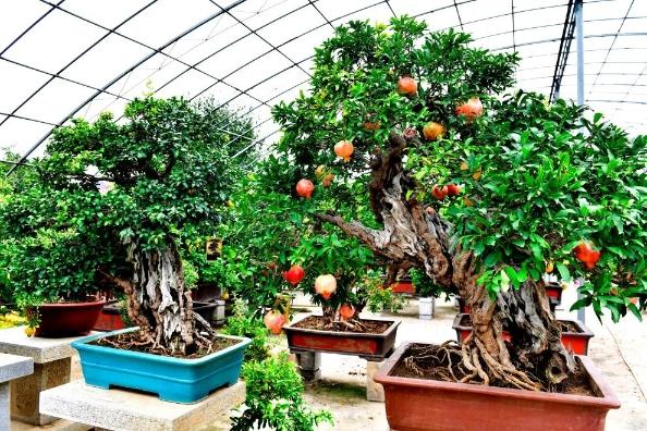 △山东枣庄峄城区万景园盆景基地的石榴盆景