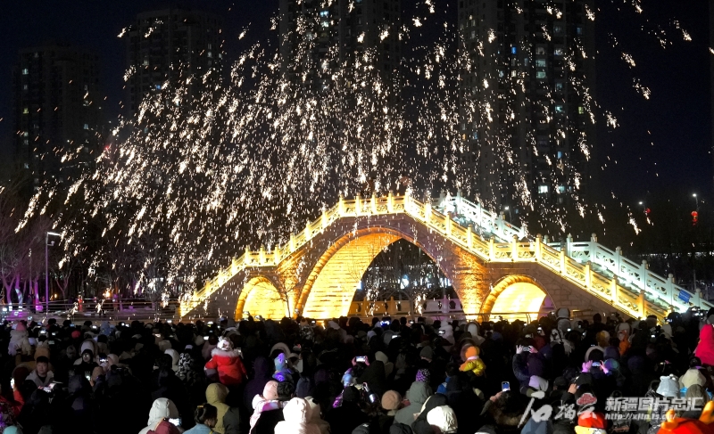 24日22时许,克拉玛依河中心景区的拱桥上,打花艺人将烧红的铁水泼至空中,猛击之下,铁花四散,似满天繁星,炫彩夺目,桥下的观众不时发出惊呼,沉浸在非遗的魅力之中。非遗展示、歌舞、社火表演、灯光秀……人们的热情伴随着灯光、音乐,热热闹闹地点亮克拉玛依的元宵之夜。