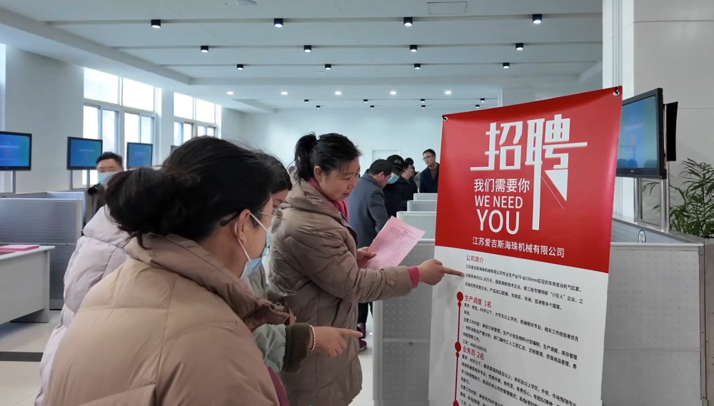 在江苏省淮安市洪泽区开展新春首场企业招聘会上,来自当地多家企业提供岗位,通过“定点推送”招聘信息,帮助群众在家门口就业。