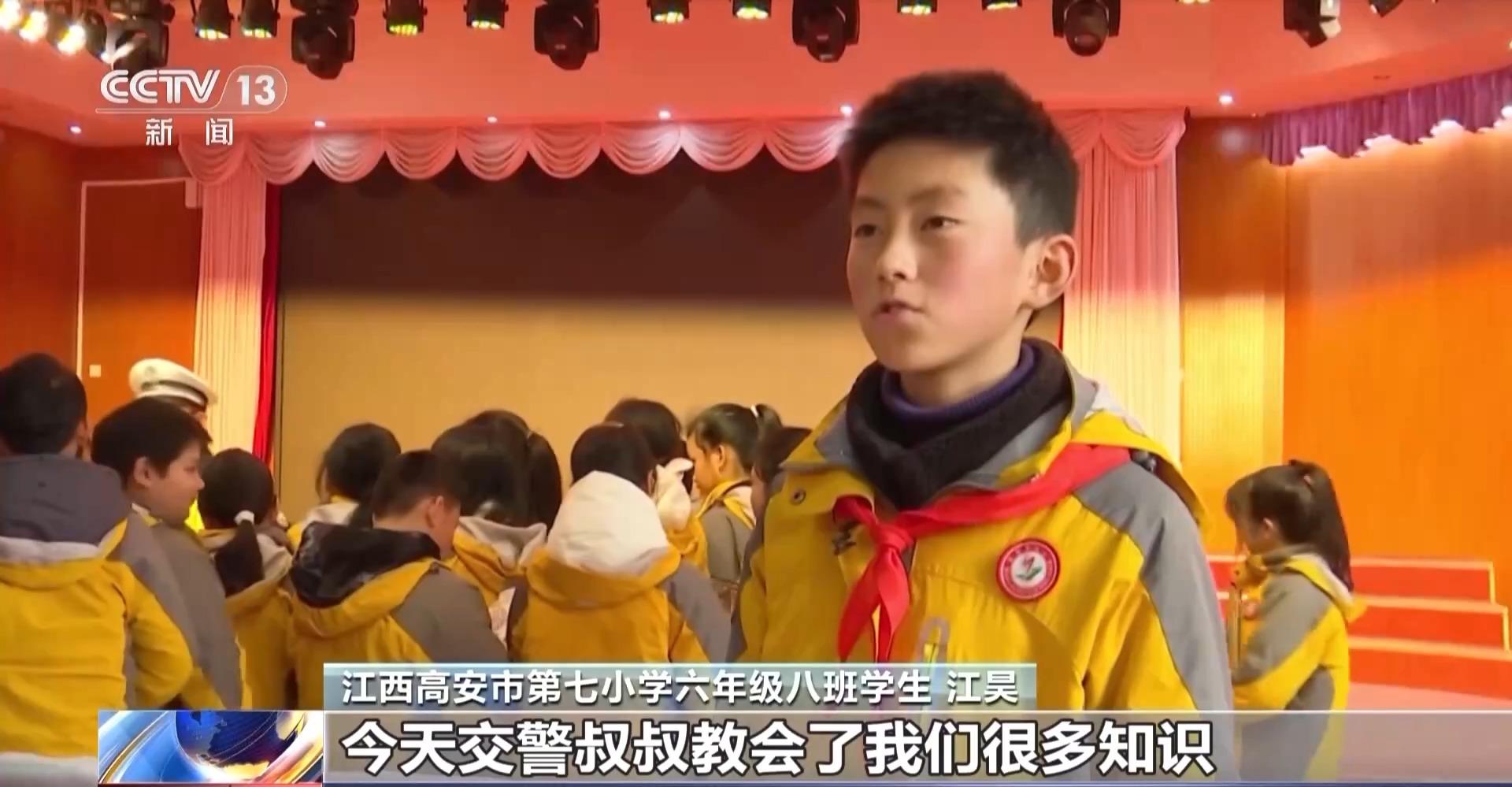 江西高安市第七小学六年级八班学生 江昊:今天交警叔叔教会了我们很多知识,以后我一定会好好遵守交通规则,保护好自己,文明出行。