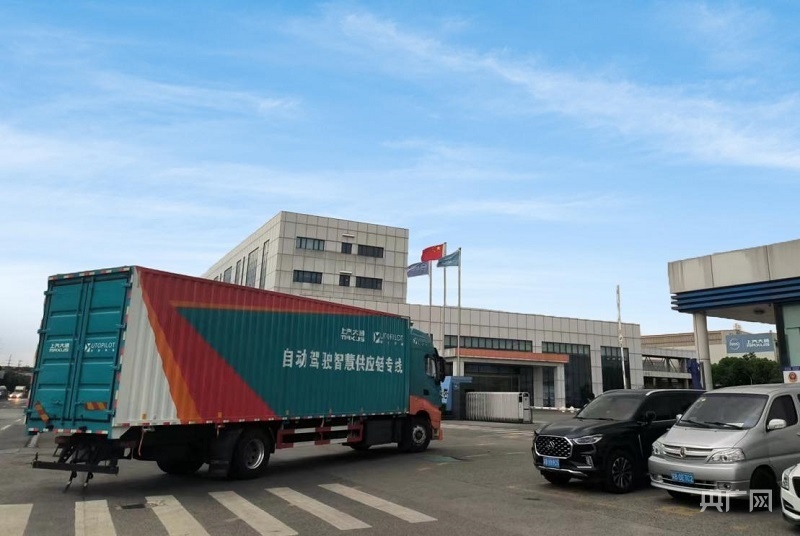 测试中的无人驾驶货车(央广网记者 庄滨滨 摄)