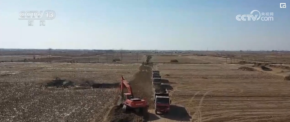 在齐齐哈尔市富裕县二道湾镇富兴村,大型挖掘机、压路机正在地头铺设沙石路面。这是二道湾镇正在推进的高标准农田项目建设,涵盖田间路、生产路、沟道治理、电力设施等多项内容。