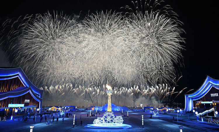 2月17日,第十四届全国冬季运动会主火炬在开幕式上被点燃。新华社记者 连振 摄