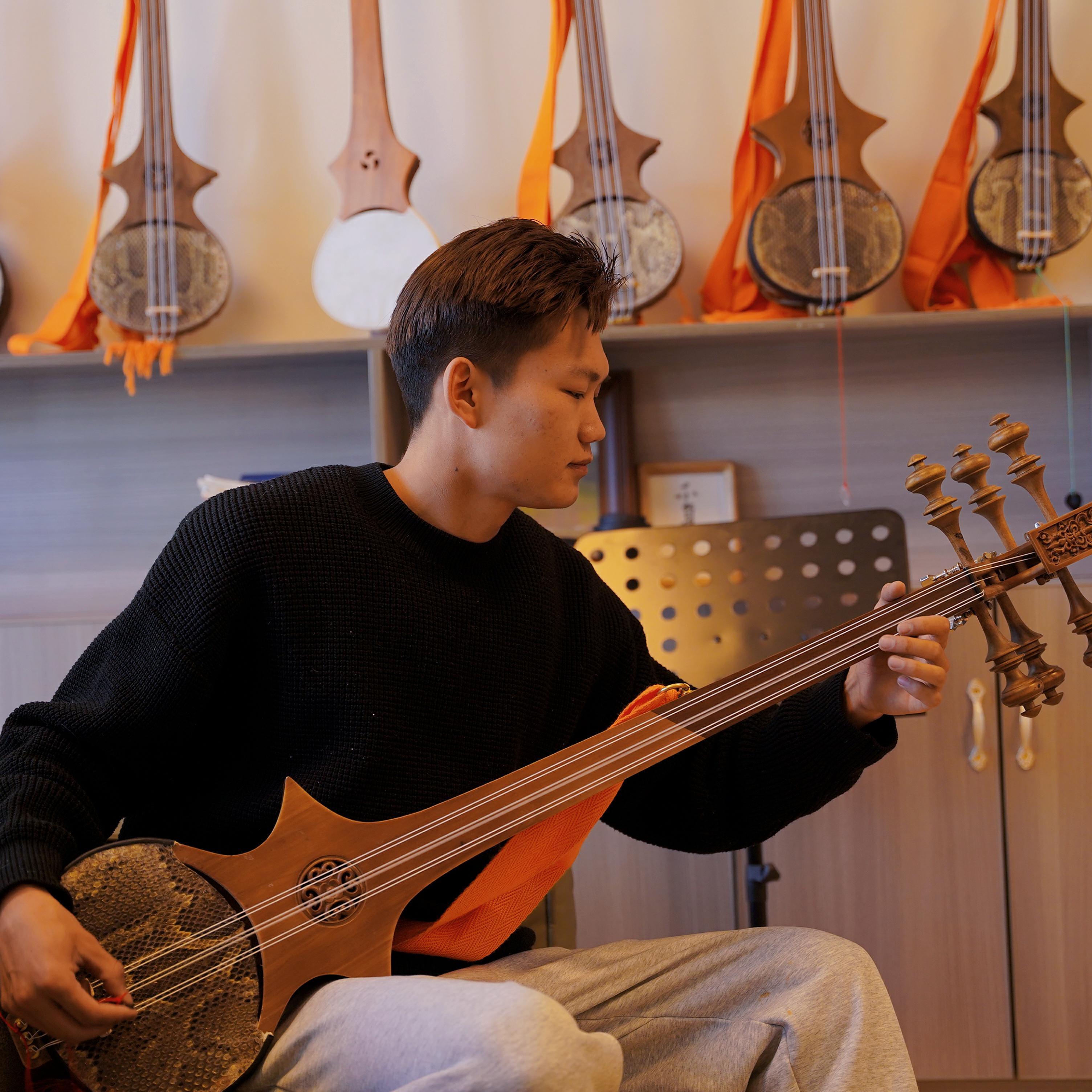 罗布是山南市扎囊县人,2023年毕业于西藏大学艺术学院。“虽然我小时候就喜欢唱歌跳舞,但在来拉萨上大学之前还从未接触过扎念。”罗布如是说。入学后,每名学生除了各自的专业课以外,学校还要求学习为期一年半的钢琴、扎念等乐器,于是罗布在西藏大学艺术学院教授加拉的指导下开始学习扎念,并慢慢地喜欢上了这种乐器。罗布和扎念就此结缘。