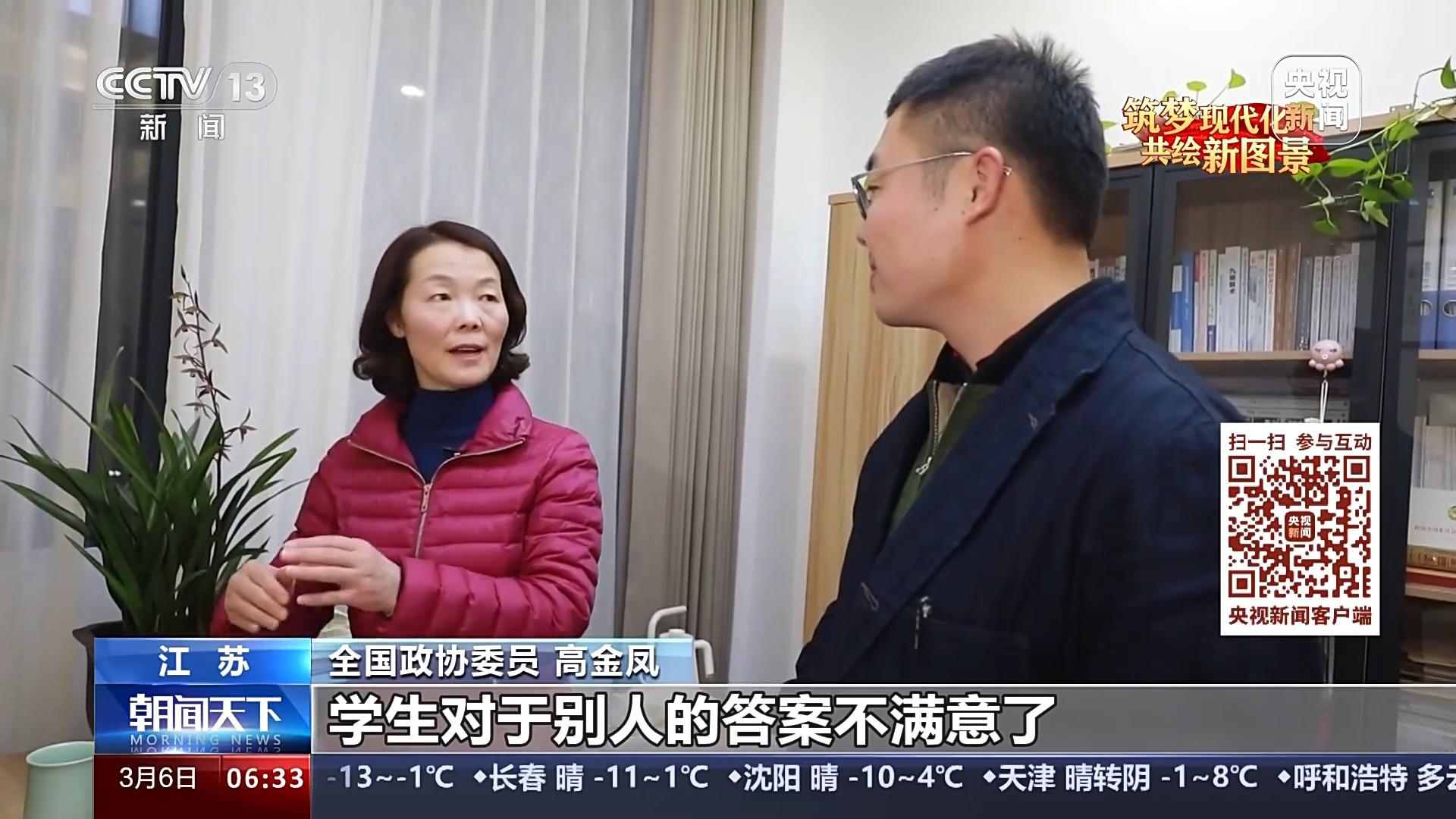 全国政协委员 高金凤:未来的课堂一定是老师用学科特质性的知识方法去引领孩子进行开放式的、互动式的探究,最终我们都是指向于孩子去发现问题,提炼问题,最终解决问题。这样做的目的其实就是想方设法在扭转老师从问题提出到指定的,或者说统一的答案的这样一个教法的指向。