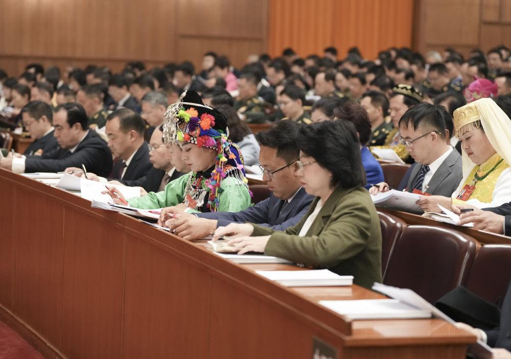 3月6日,全国人大代表李利参加十四届全国人大二次会议贵州代表团全体会议。
