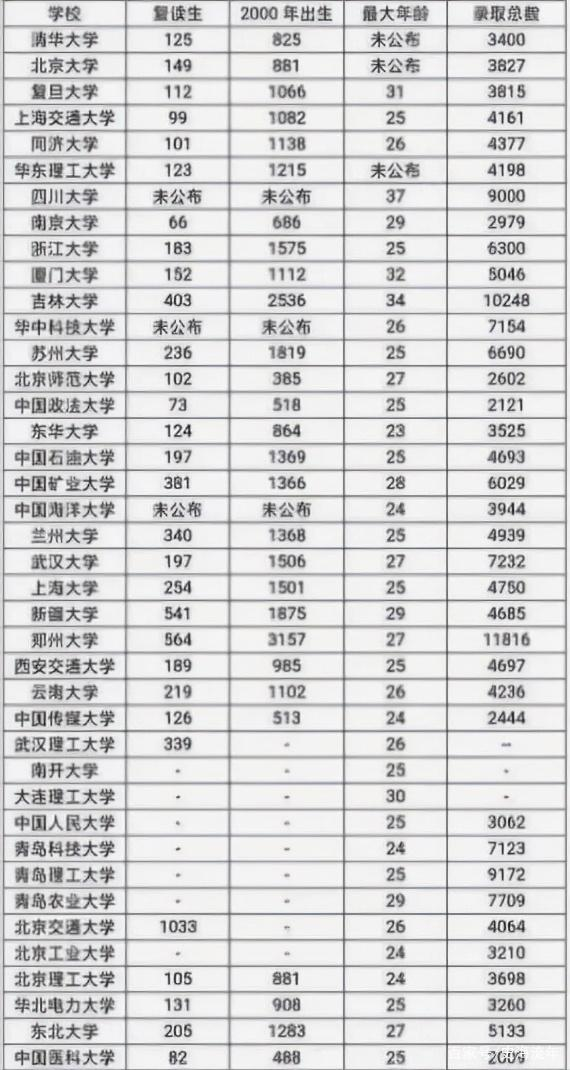 网络曾经流出一份部分学校2021年录取复读生的数据——