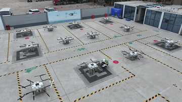 在丰翼无人机运营中心,地勤人员对无人机进行起飞前的检查(无人机照片)。