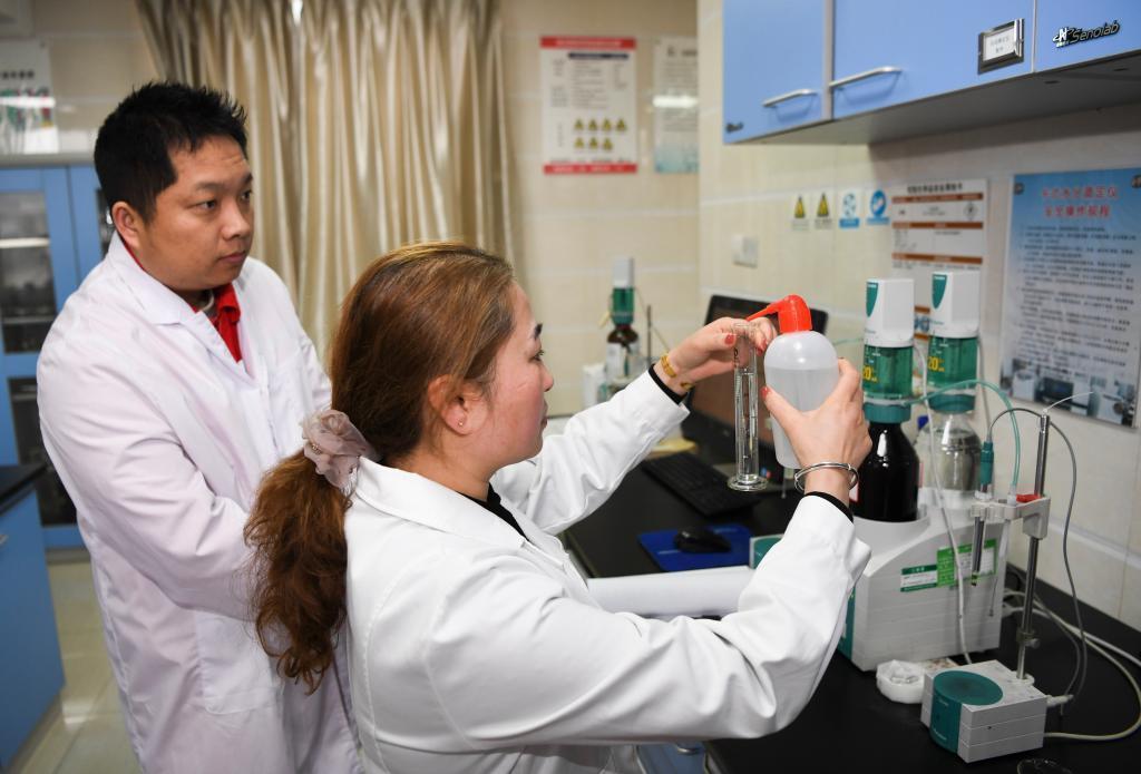 工作人员在重庆涪陵页岩气田油气化验室作业。