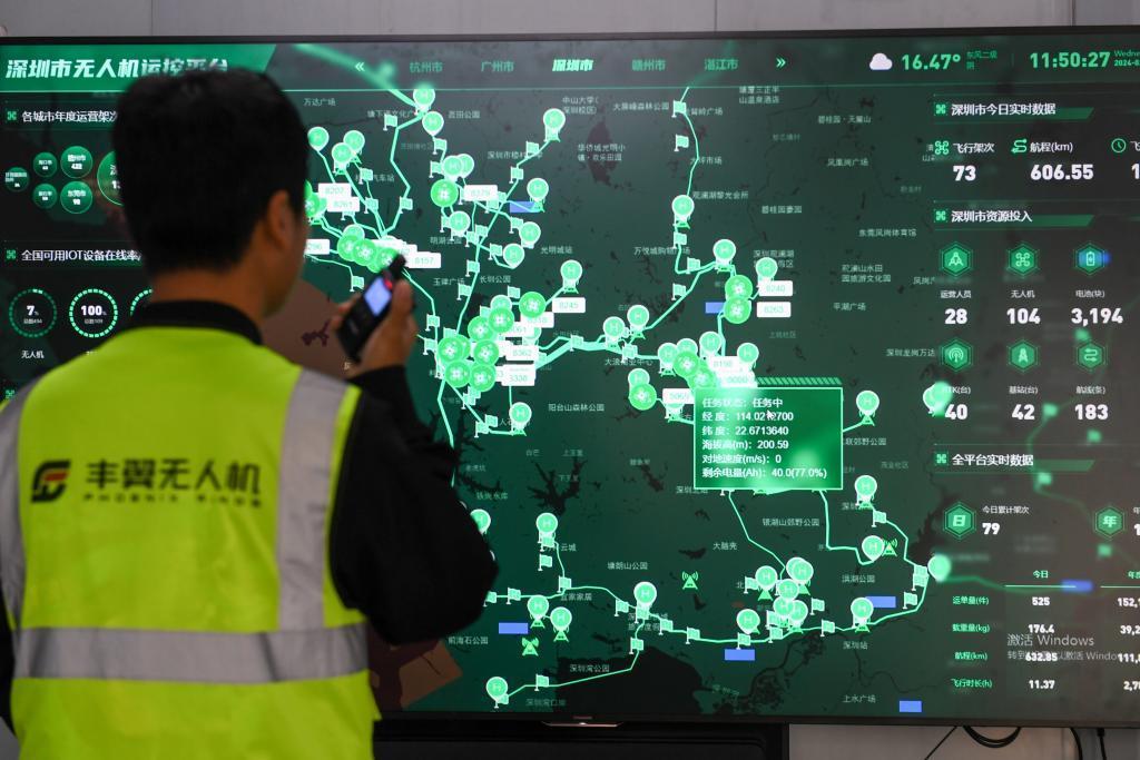 在丰翼科技(深圳)有限公司运营中心,机长对无人机进行调度。