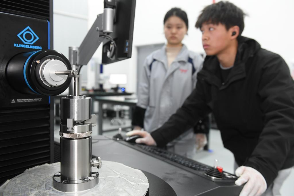 浙江丰立智能科技股份有限公司技术人员在实验室测量齿轮精度。