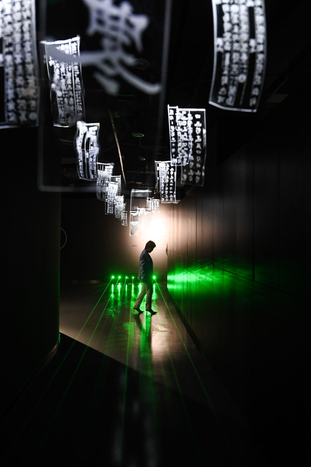 2023年4月21日,一名读者在浙江省嘉兴市图书馆元宇宙阅读体验馆内通过触碰不同光线来感受音律的变化。该体验馆是全国公共图书馆领域率先落地的元宇宙阅读体验基地,将推动阅读行为和场景从一维到多维,实现纸质阅读+数字阅读+沉浸式体验的多元方式。 新华社记者 徐昱 摄