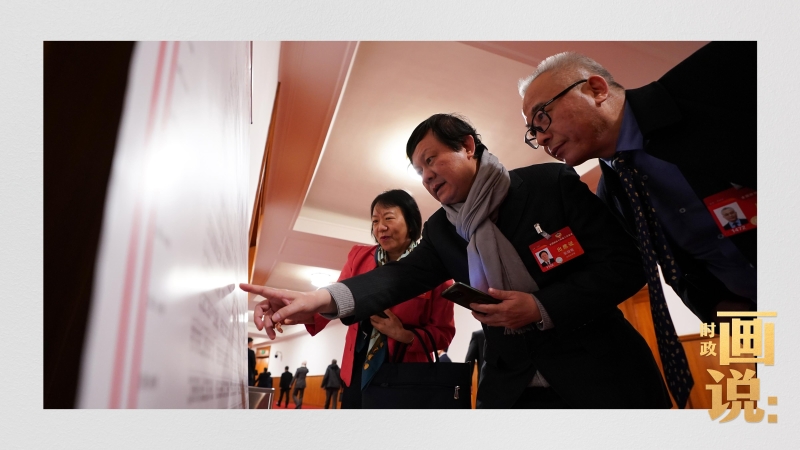 △指尖听会。视障人士、全国人大代表王永澄抚摸着特制的盲文版报告。