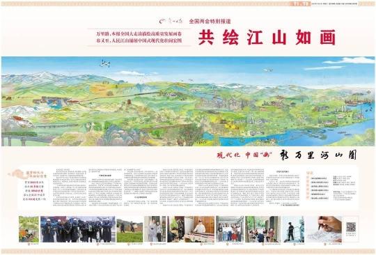 《共绘江山如画》特辑报道以“用脚步丈量神州大地高质量发展一线火热实践,以画笔描绘全面建设社会主义现代化国家雄心”为立意,根植历时一年、跨越18000多公里的全国大走读,深耕8幅“古画新作”,通过跨越两个春天的报道切口,生动描绘中国式现代化建设壮美图景。