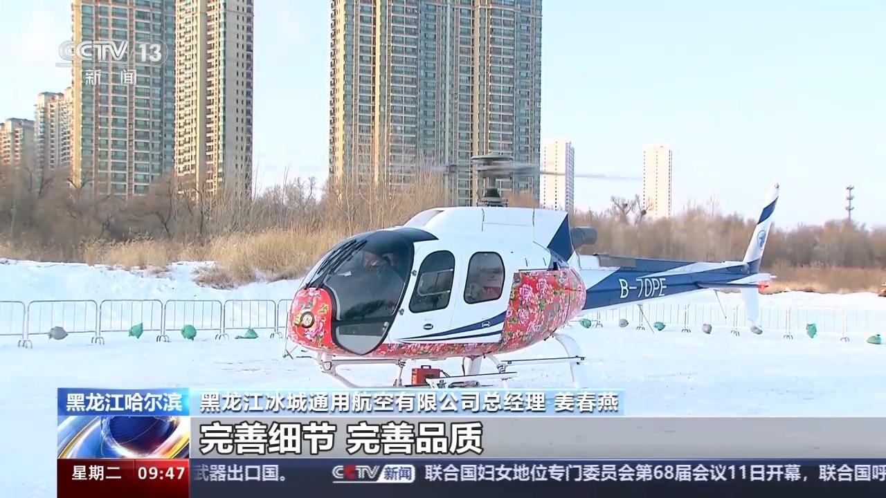 黑龙江冰城通用航空有限公司总经理 姜春燕:用游客的需求来倒逼我们服务品质的提升。完善细节、完善品质,推出更多的场景创新。从另外的一个视角欣赏到这个城市不一样的美。
